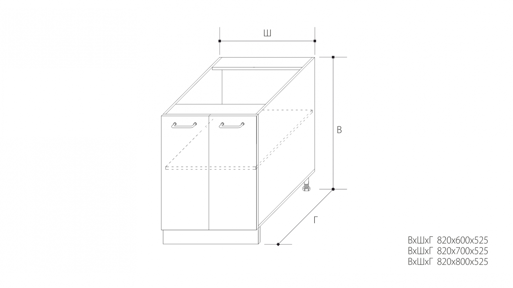 ВхШхГ: 820х800х525 мм.